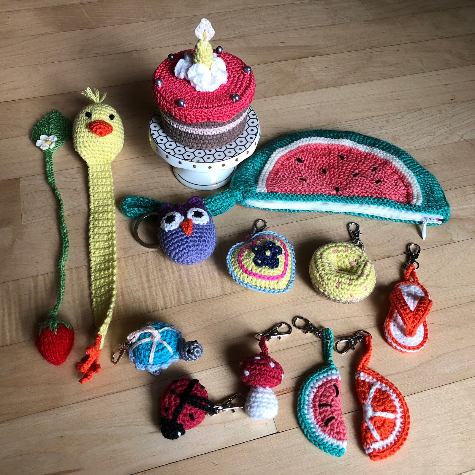 Also made a small mini birthday cake (on a stand) and a little watermelon purse and a couple of book markers.